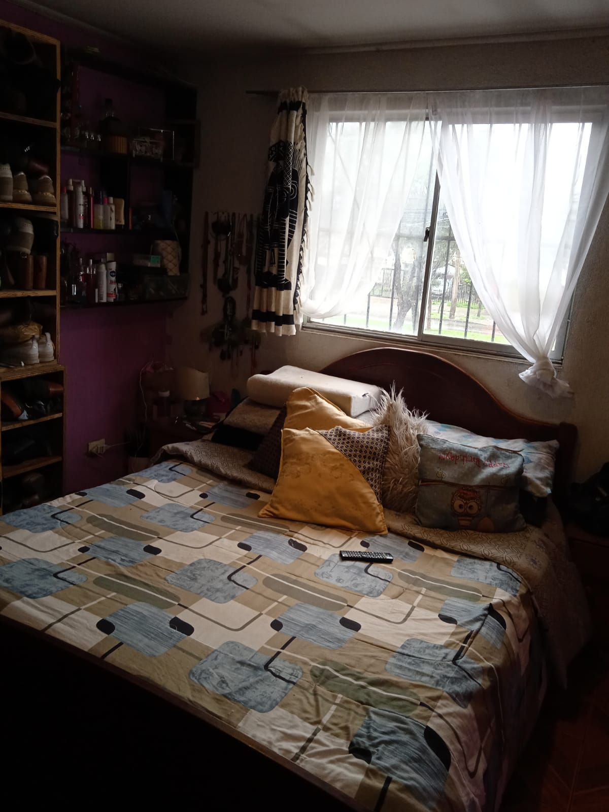 Un dormitorio en segundo piso con balcón y con vista a la cordillera. Techo teja y zinc, protecciones ventanas y cobertizo en antejardín