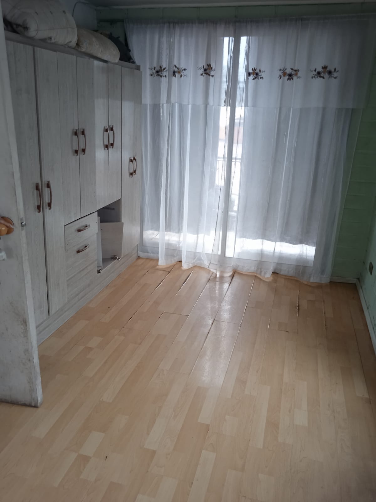 Un dormitorio en segundo piso con balcón y con vista a la cordillera. Techo teja y zinc, protecciones ventanas y cobertizo en antejardín