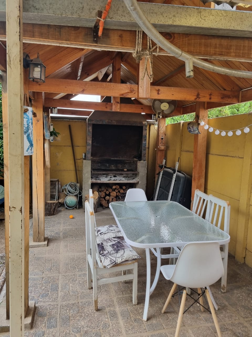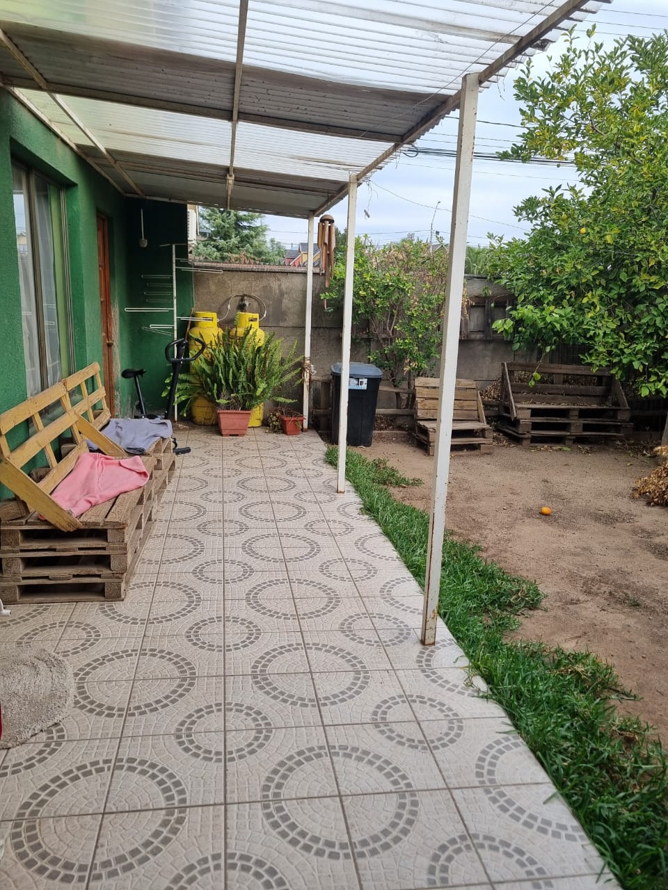 terraza quincho, árboles frutales, estacionamiento techado.