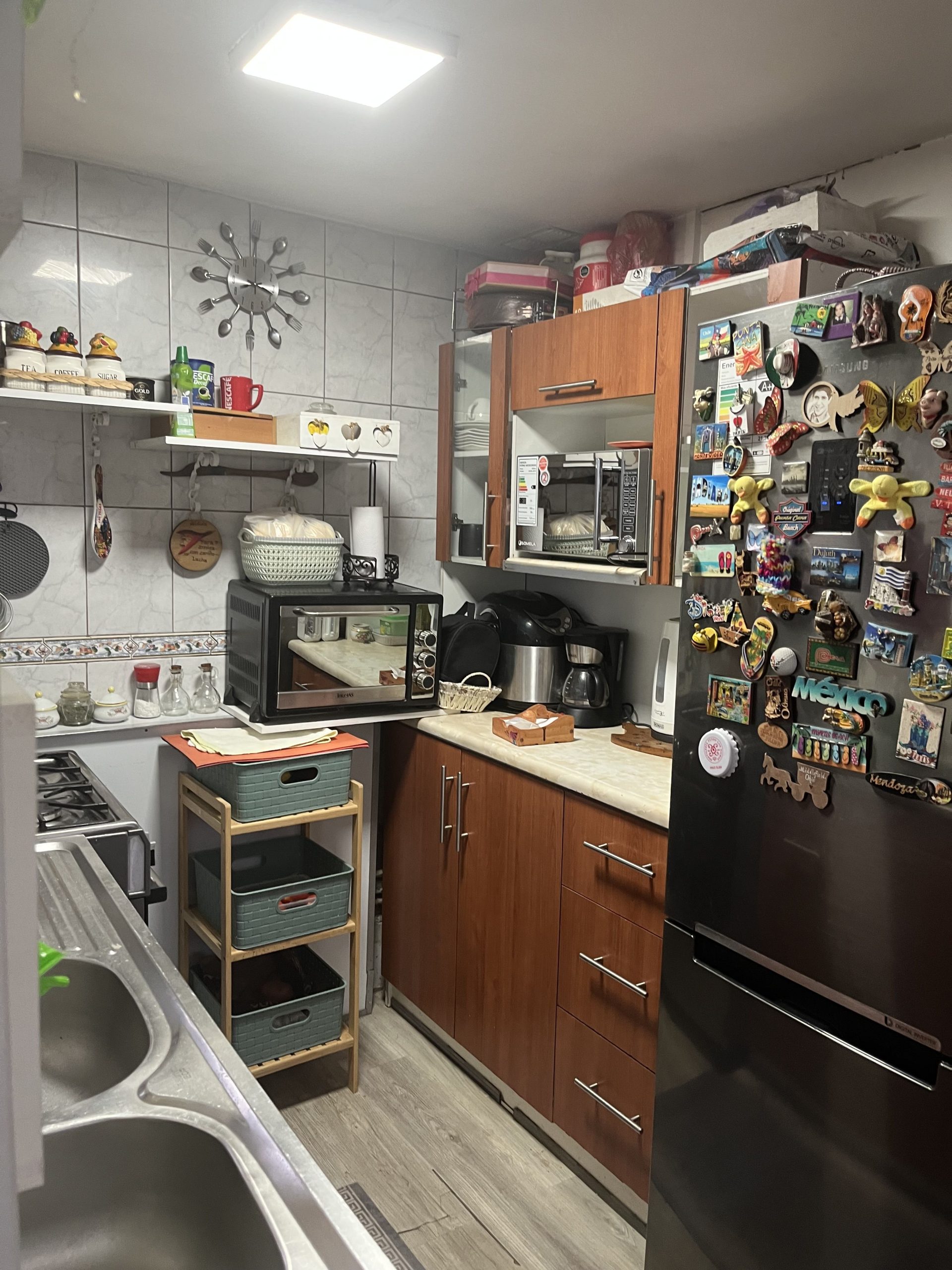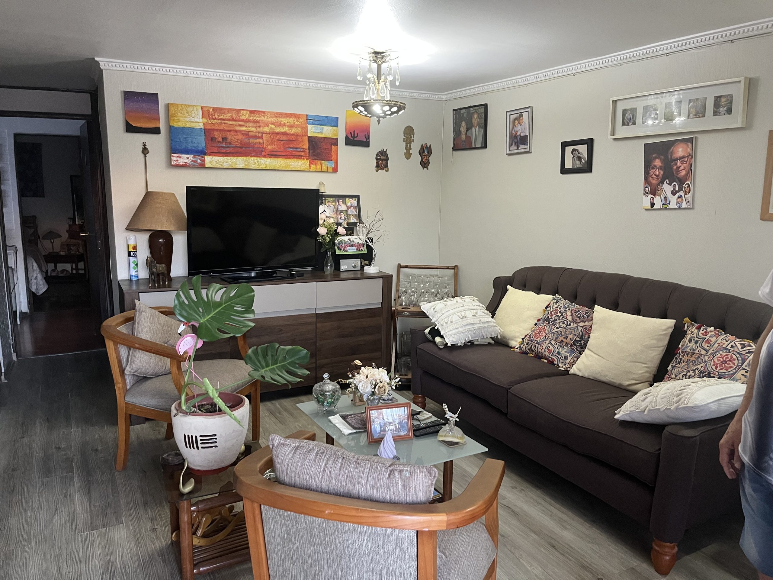 La propiedad consta de un amplio living-comedor con piso flotante, cocina espaciosa con muebles a medida, un baño completo con receptáculo y cerámica, y tres dormitorios, uno de ellos matrimonial de gran tamaño con walking closet.