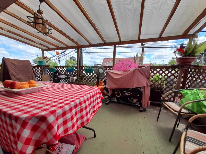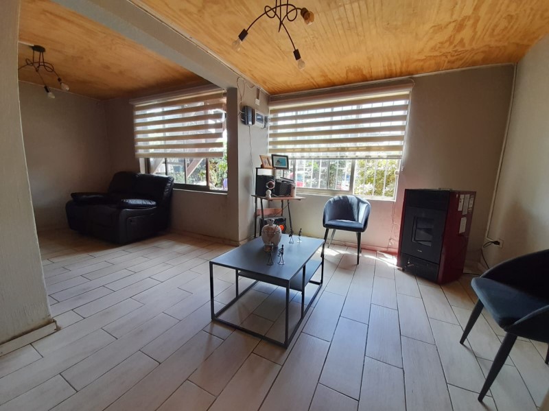 La casa de dos pisos, cuenta en el primer nivel con, living, sala de estar, estufa a pellet, cocina comedor, dos dormitorios, aire acondicionado, un baño, terraza, bodega y un departamento interior con baño.