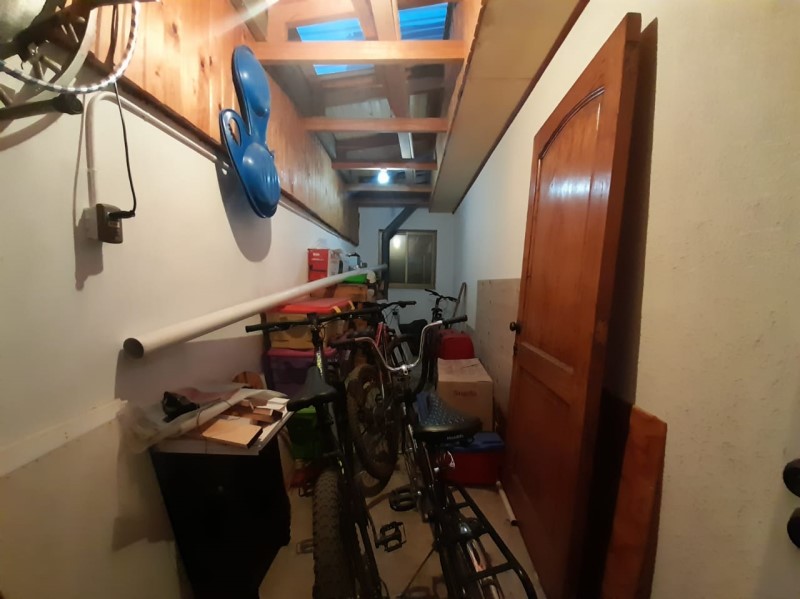 Tiene estacionamiento para un vehículo, bodega, terraza techada y reja perimetral.