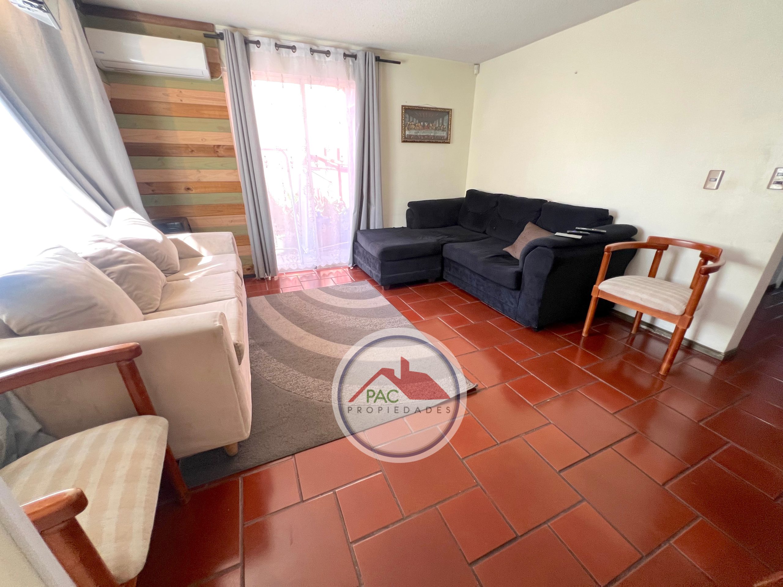 Amplio living comedor con aire acondicionado.