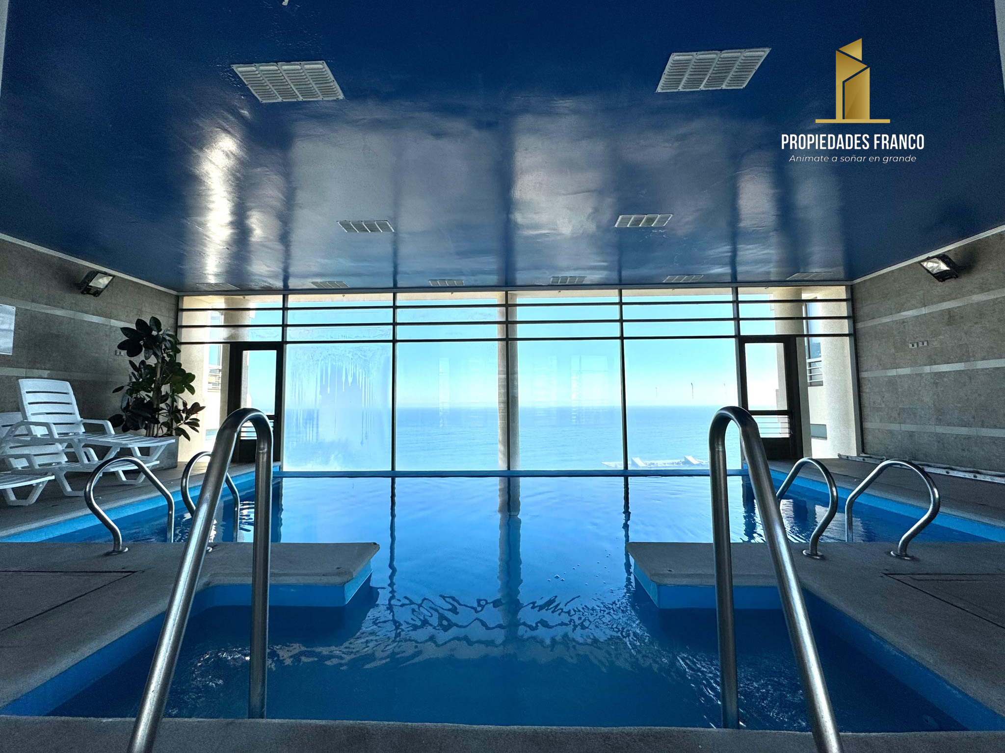 Piscina temperada con vista al mar en piso 21