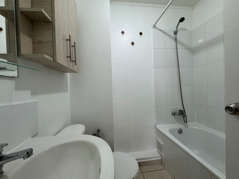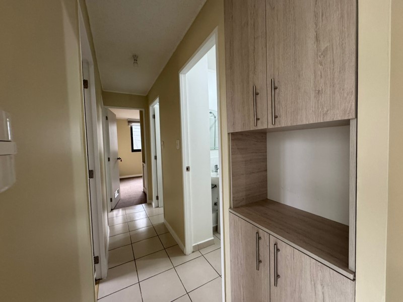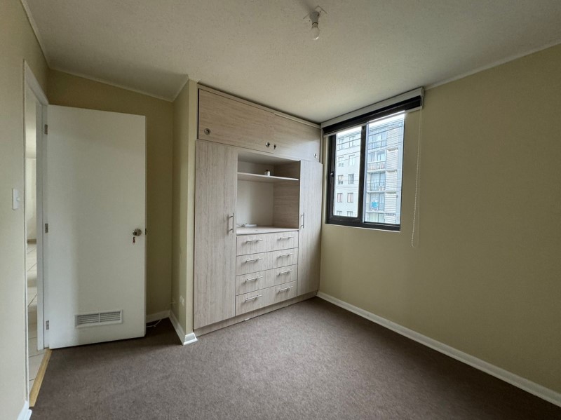 La propiedad se arrienda con cortinas roller en los tres dormitorios, con riel para cortinas y soporte para TV en living, un estacionamiento y gastos comunes incluidos.