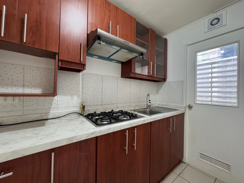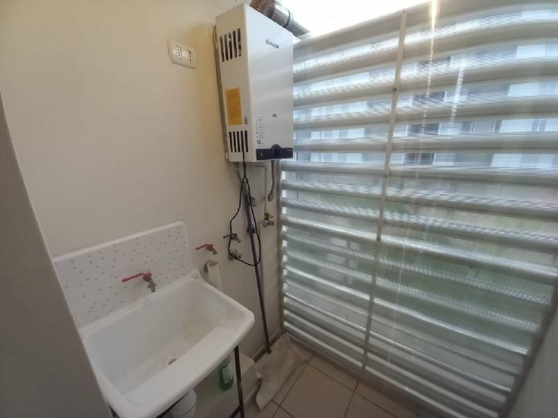 La propiedad está en el segundo piso y cuenta con living comedor con balcón de 4 m2, cocina amoblada y equipada con encimera y campana, logia techada independiente con pequeño lavadero y calefont ionizado.