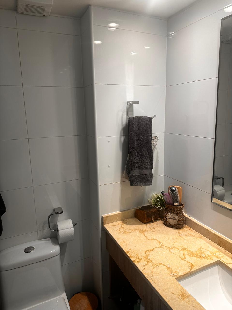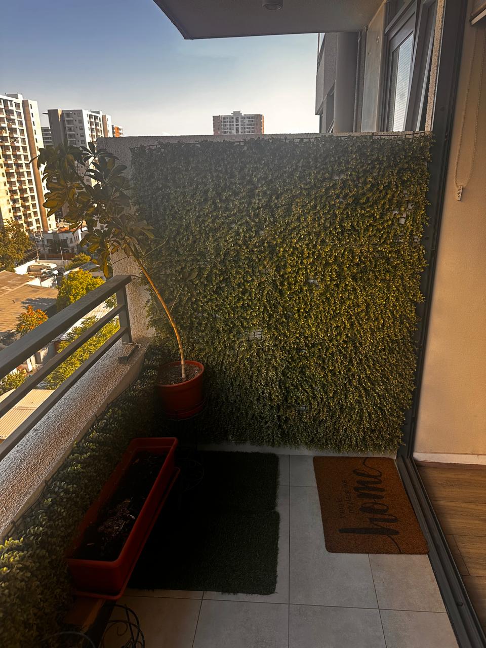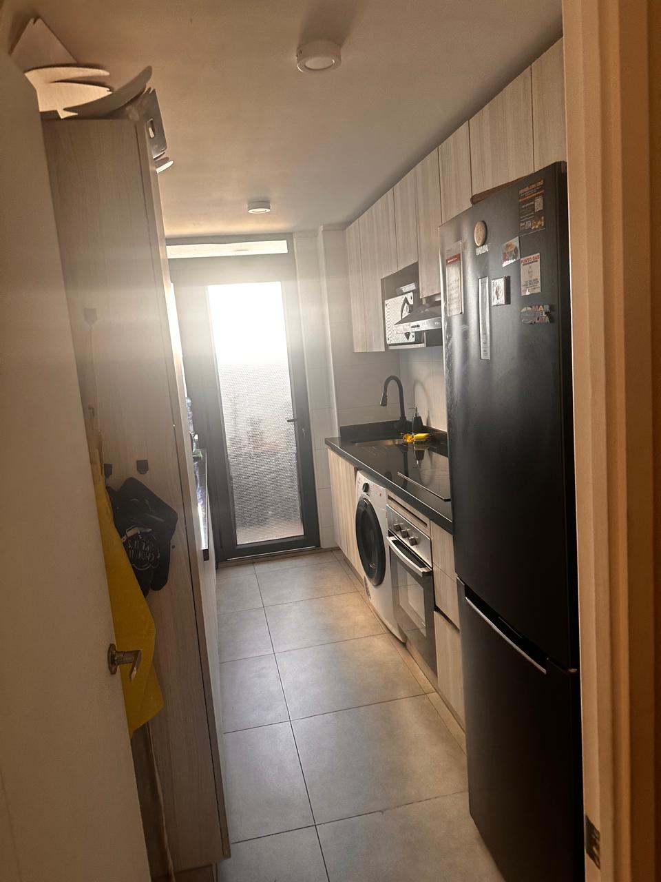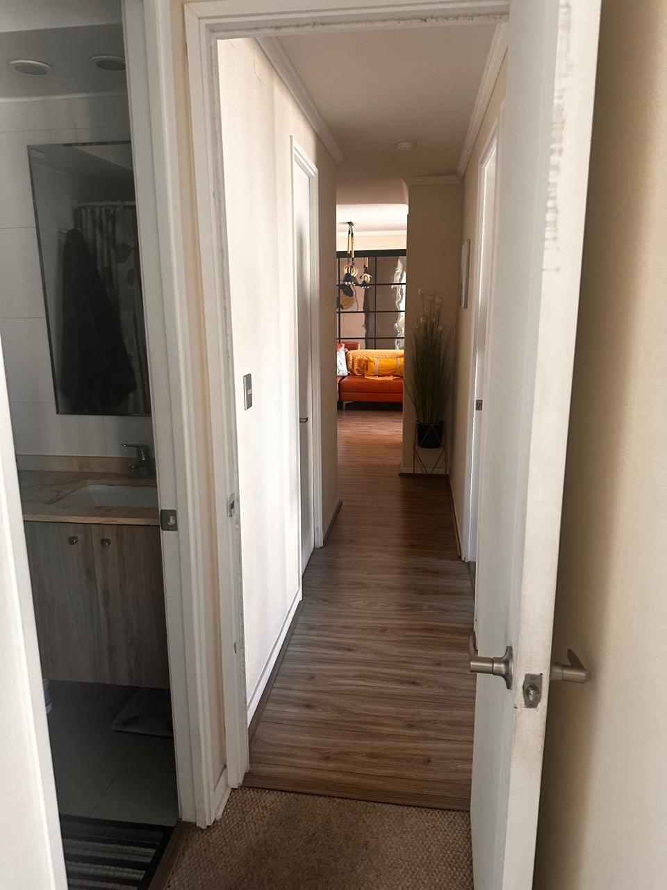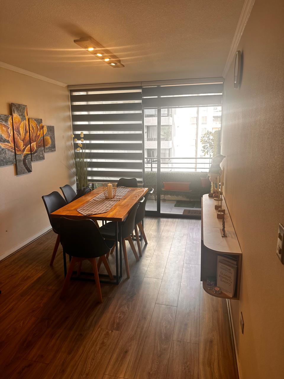 Las terminaciones incluyen piso de porcelanato en áreas comunes, cocina y baños, piso flotante en dormitorios, ventanas termopanel, cubierta de granito en la cocina. La terraza mide 2,6 metros de largo por 1,1 metros de ancho.