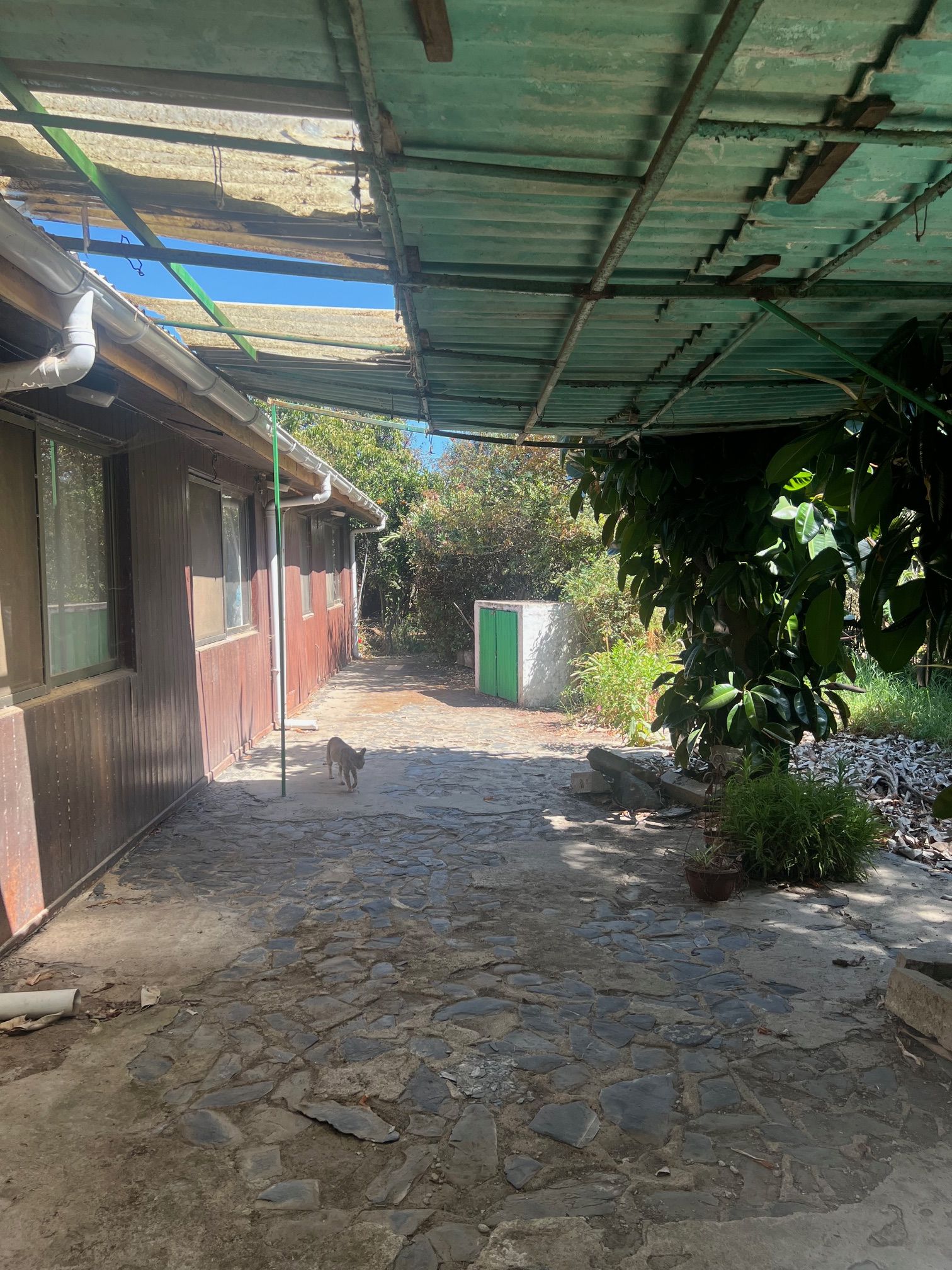 El terreno ofrece estacionamiento para 4 a 5 vehículos, además de 5 bodegas, de las cuales 3 cuentan con cierre y pueden utilizarse para animales o almacenamiento.