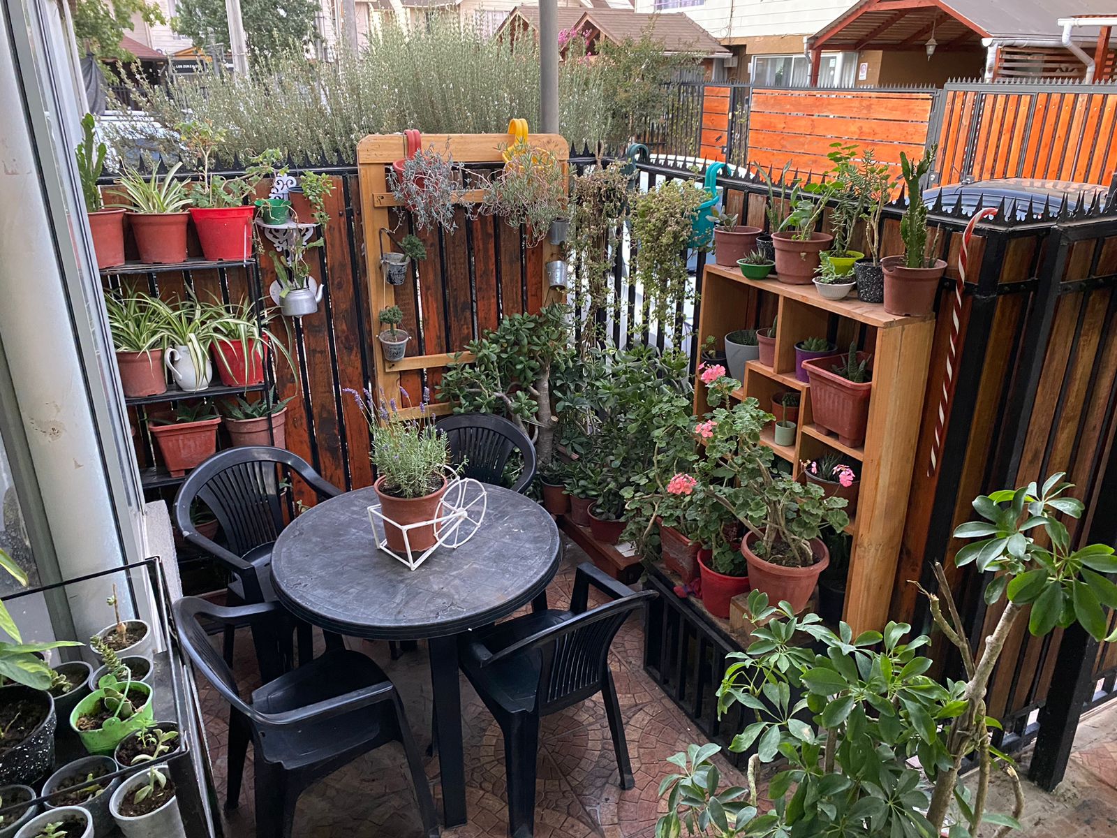 Pequeña terraza y espacio para plantas.