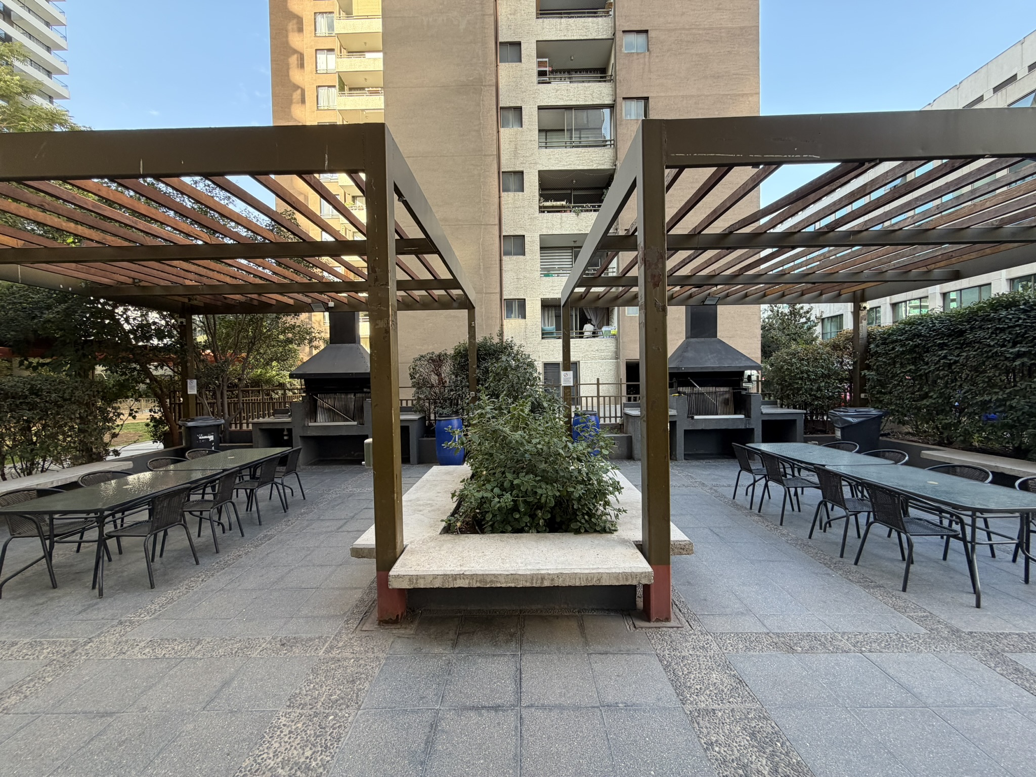 Condominio cerrado, cuenta con consejería las 24 horas del día, 3 ascensores, cámaras de seguridad, piscina, quinchos, gimnasio, lavandería, bicicletero, áreas verdes, sala de cine y estacionamientos de visitas (máximo 6 horas).