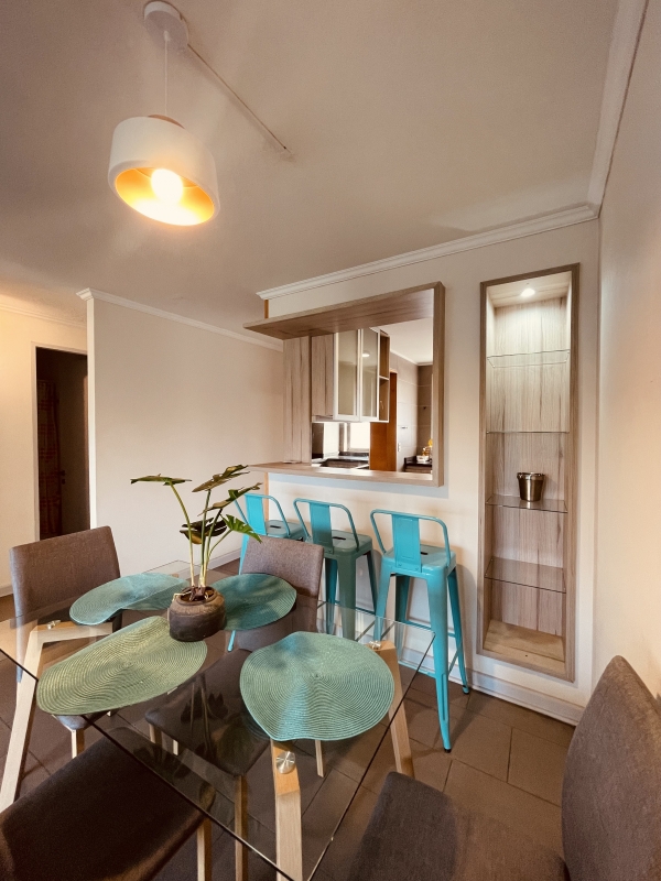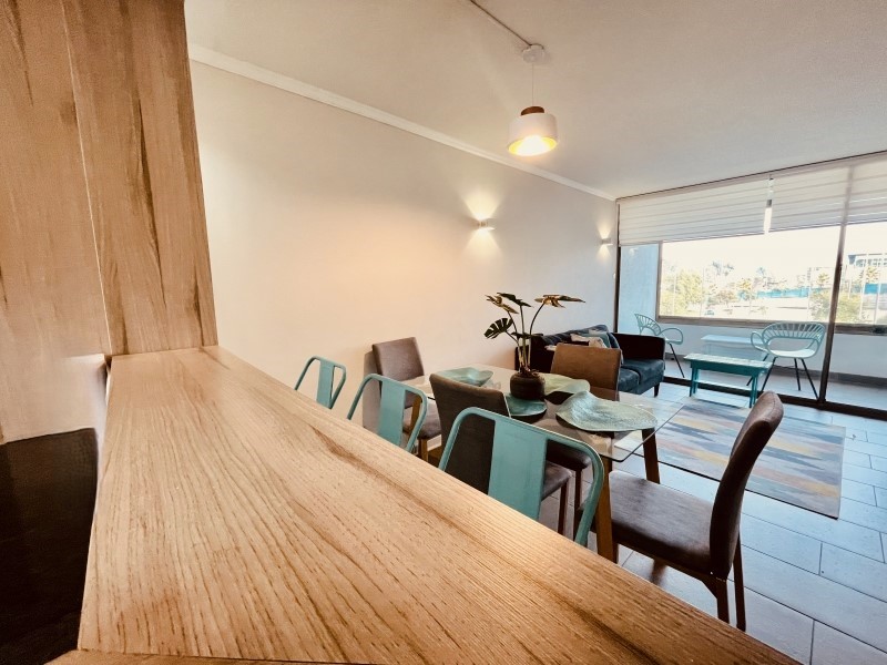 Consta de Living con salida a terraza cerrada, cocina americana amoblada y equipada, 2 amplios dormitorios, principal en suite, 2 baños completos, 1 bodega, 1 Estacionamiento.