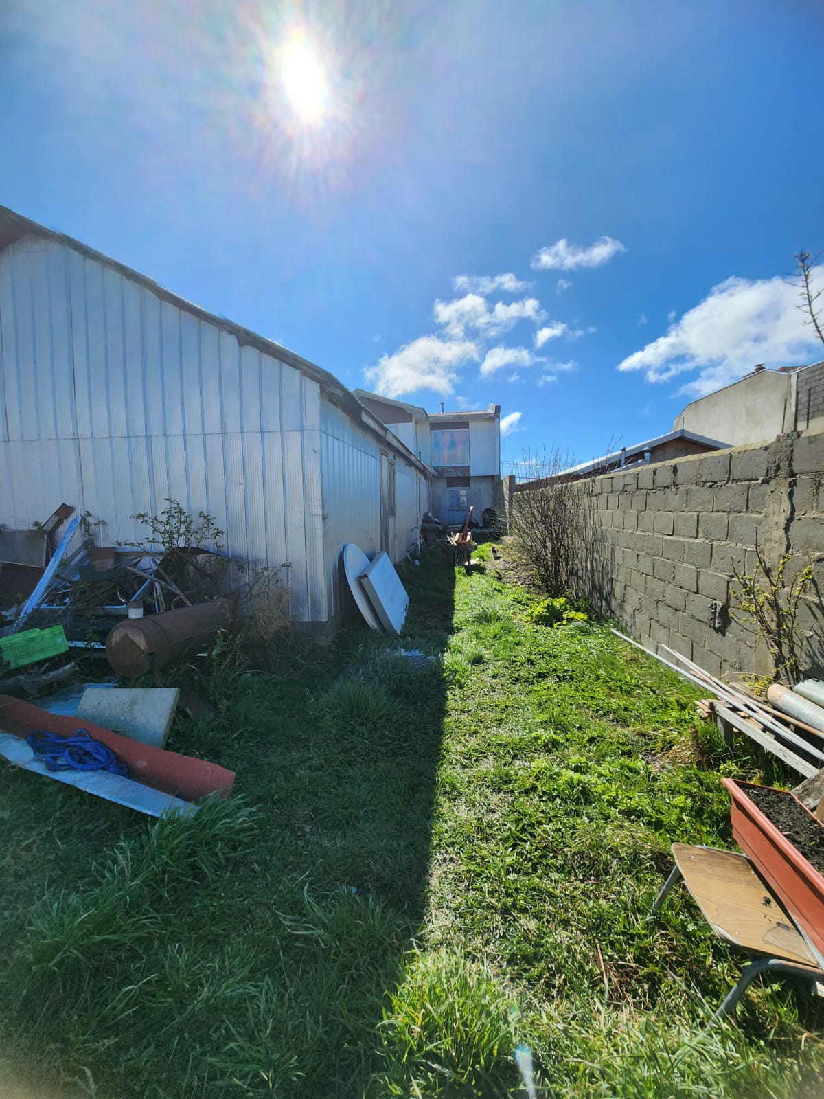 Cierre perimetral: muros de bloques (costado sur y fondo), muro divisorio de panderetas (costado norte)