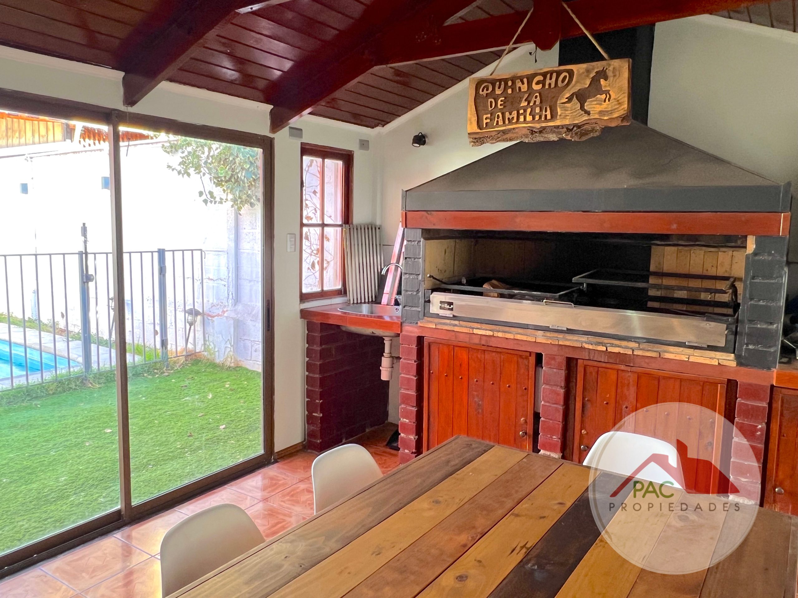 Acogedora terraza techada con quincho integrado