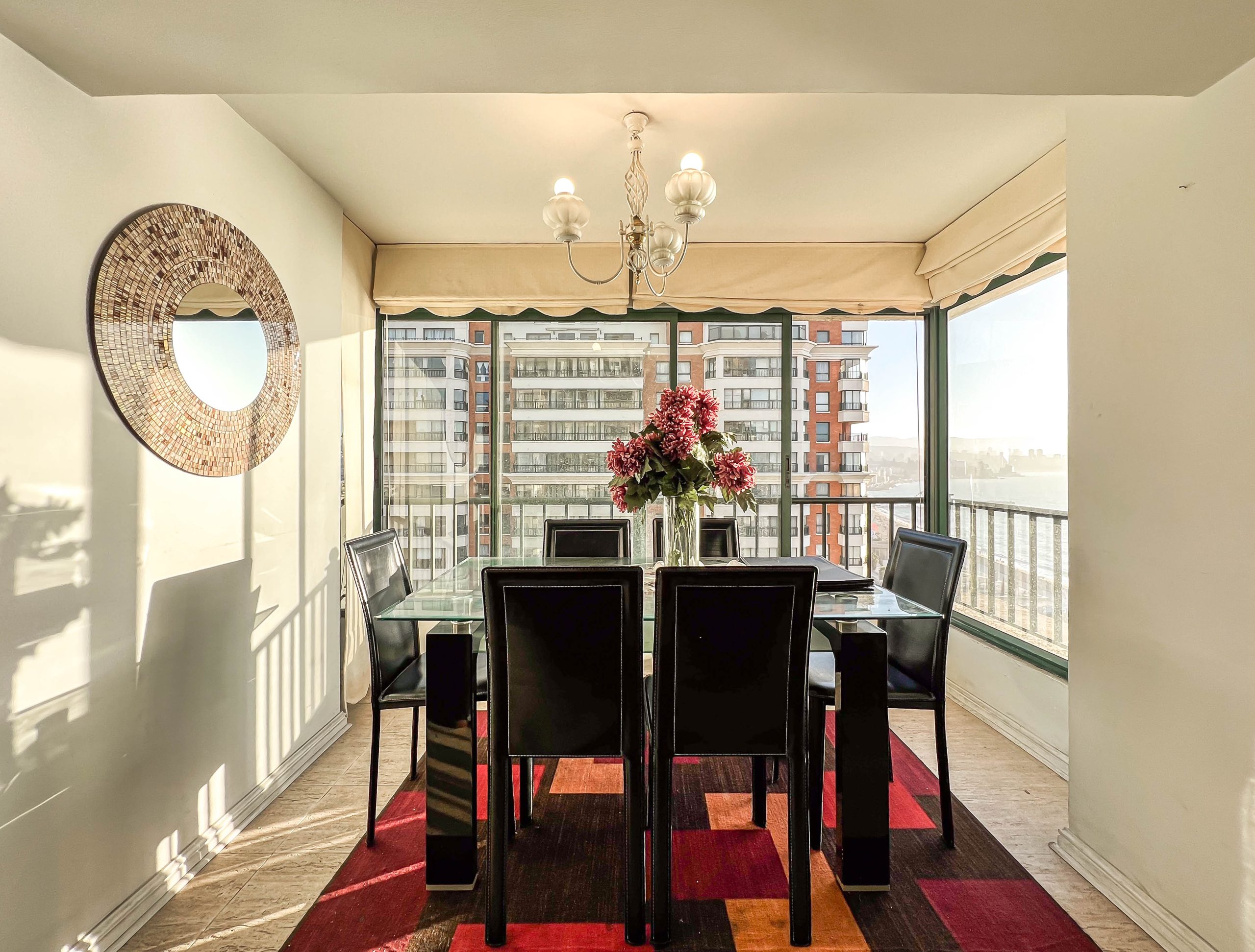 Icónico complejo de cuatro edificios de Viña del Mar construido en 1996. Se caracteriza por sus lujosas terminaciones, utilización de materiales como el mármol. Emplazado en uno de los mejores y más seguros sectores de la ciudad jardín. Frente a playa El Sol. Cercano a Centro Comercial Marina Arauco, bancos, farmacias, restaurantes y bares. Durante la temporada estival cuenta con mucha actividad turística y recreacional.