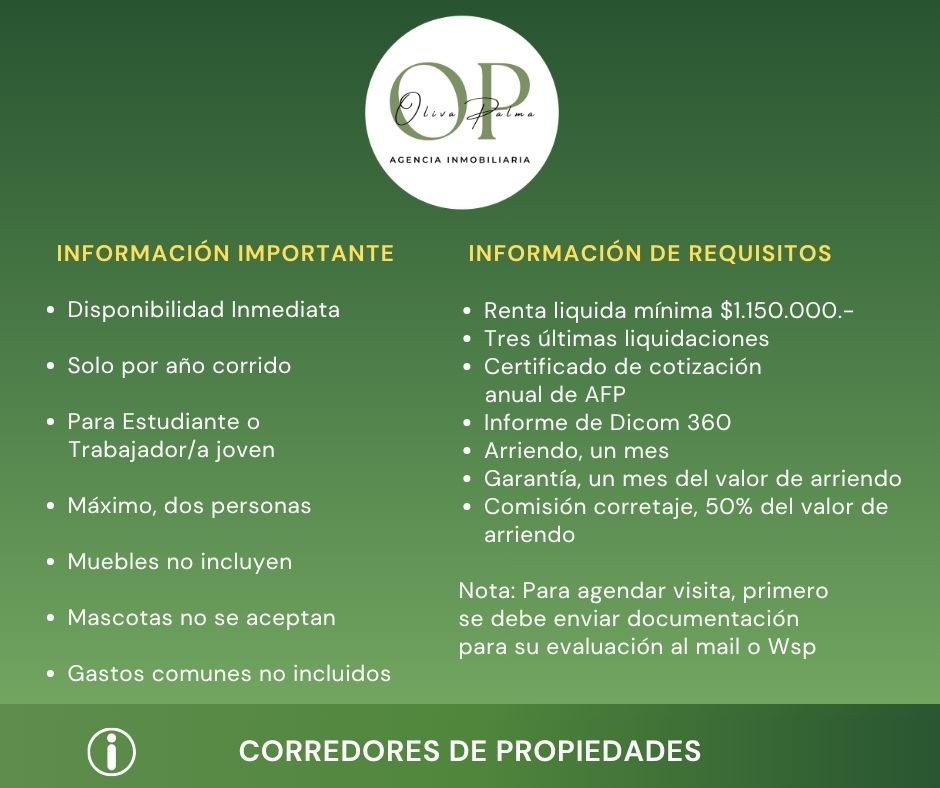 Arrienda Agencia Inmobiliaria Oliva Palma Coproch A.G. Socio N°1969 Patente Municipal Rol N°234642