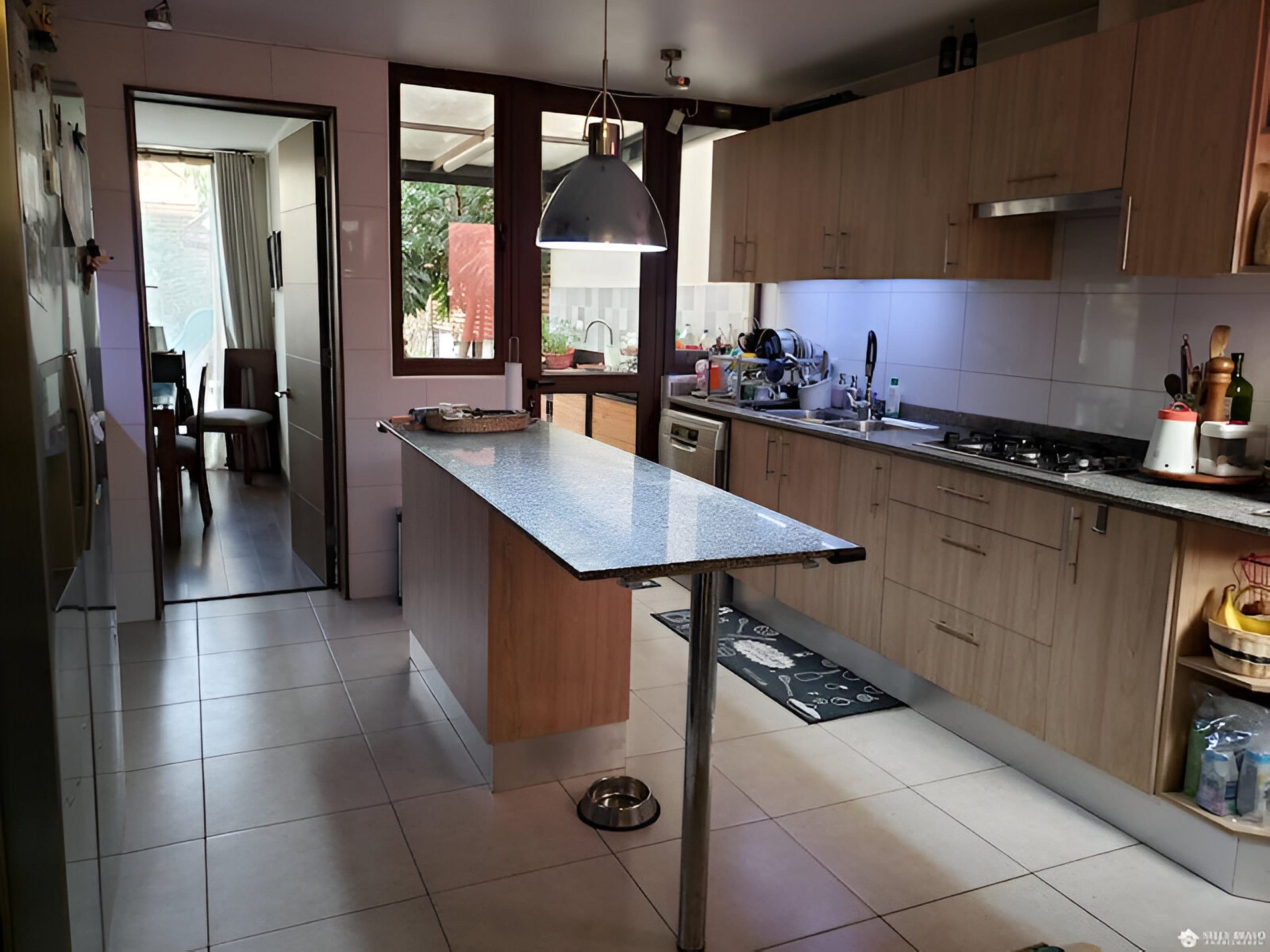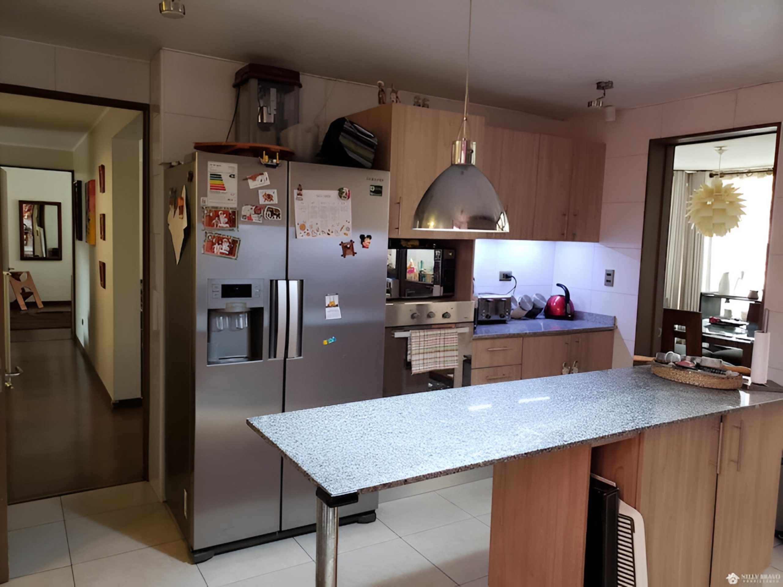 Cocina amoblada y equipada, family room.