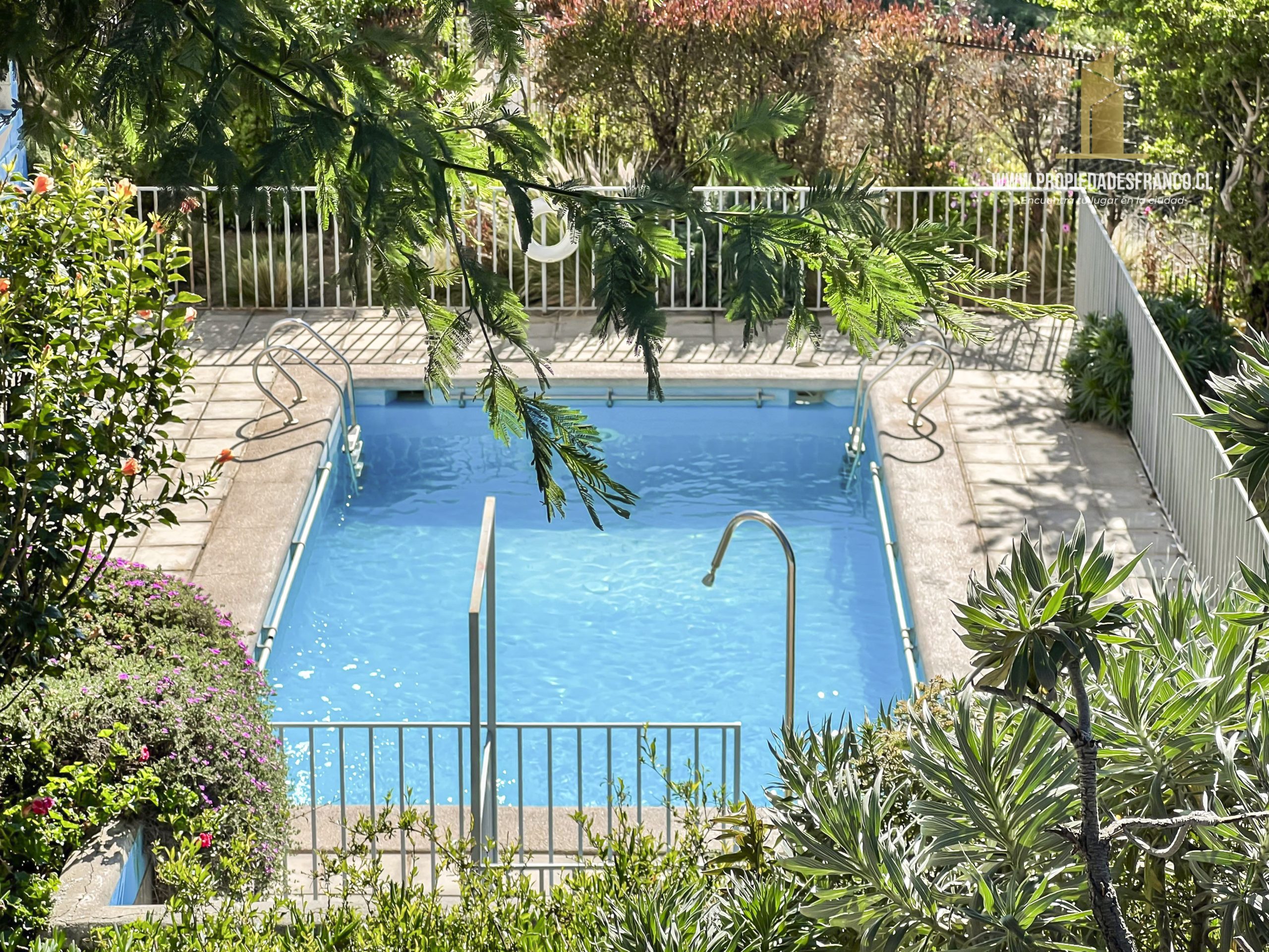 Edificio con seguridad 24/7, ascensores, áreas comunes con piscina en un entorno tranquilo y residencial.