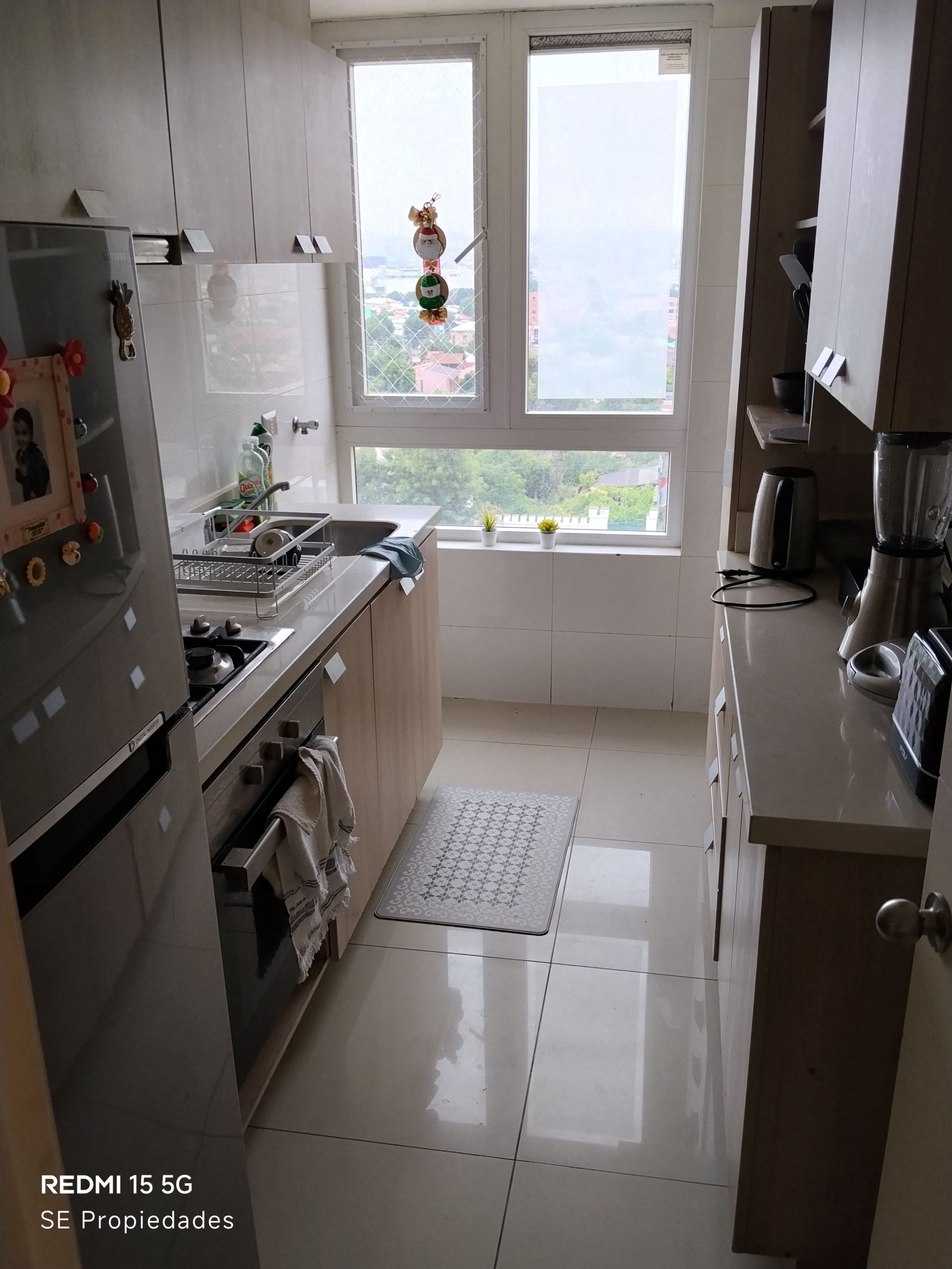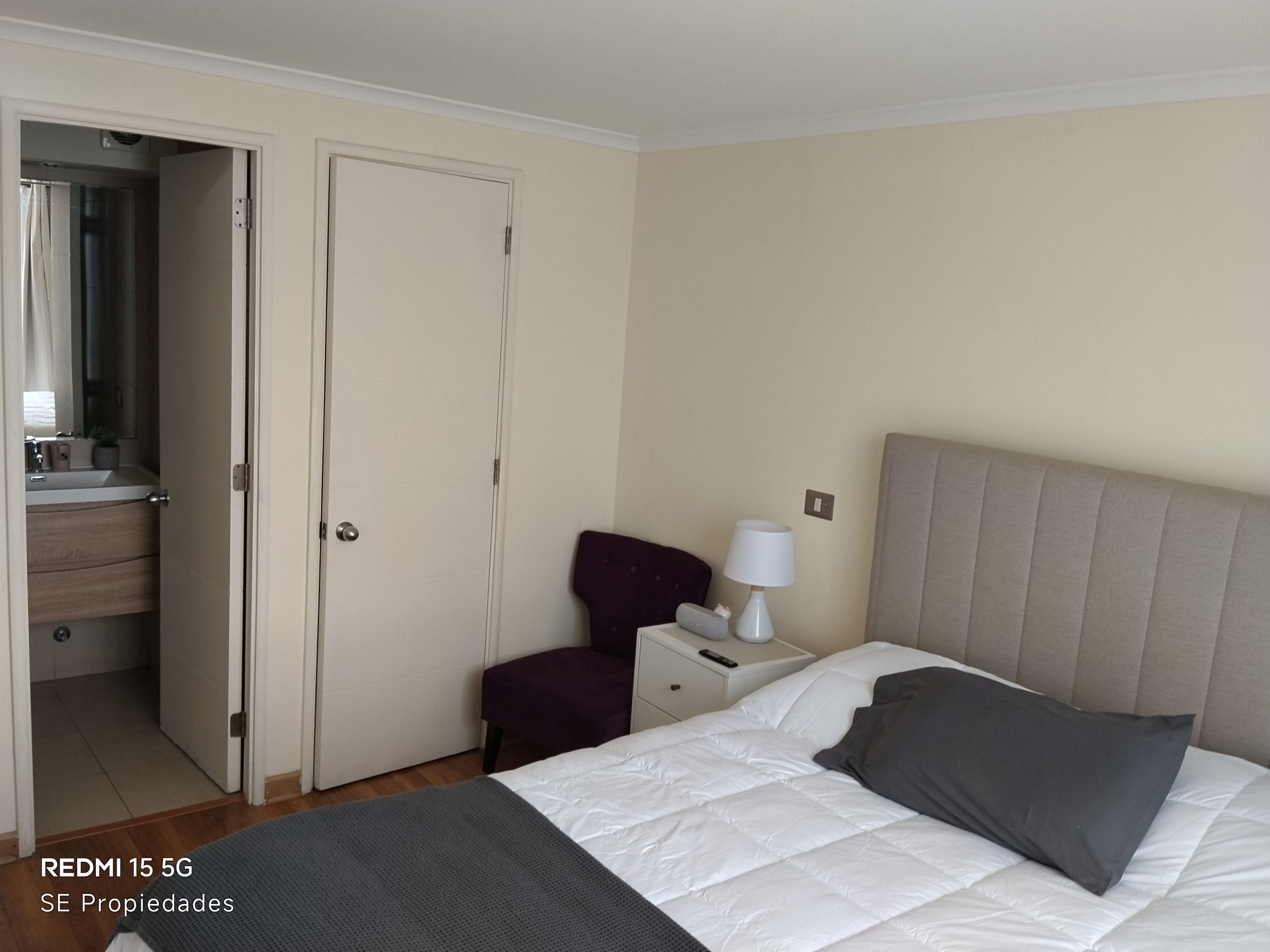 Living-comedor muy luminosos con acceso a terraza, cocina tradicional amoblada y equipada con encimera, horno eléctrico, campana y cubierta de granito, 2 dormitorios principal en suite, ambos con closet y piso foto laminado, 2 baños completos con mueble vanistorio, conexión para lavadora, calefón, ventanales y ventanas con termo panel, cerámica en pisos de cocina, baños y terraza. Orientación Poniente con excelente vista panorámica, 1 estacionamiento techado y bodega en nivel 1.