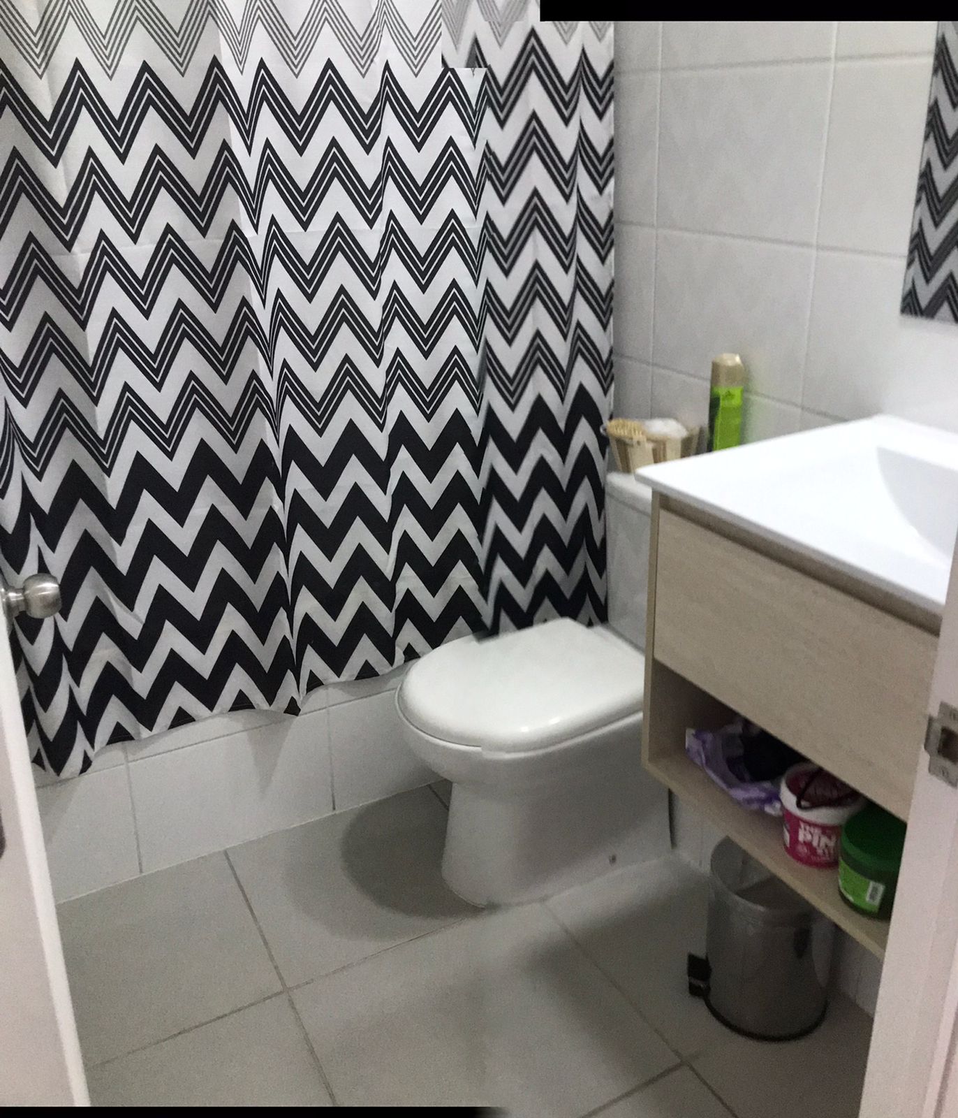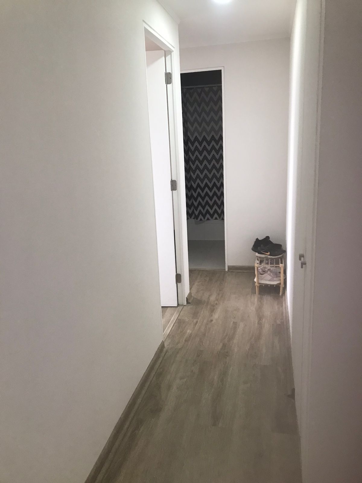 Piso de cerámica en baño, cocina y terraza, foto laminado en living y dormitorios.