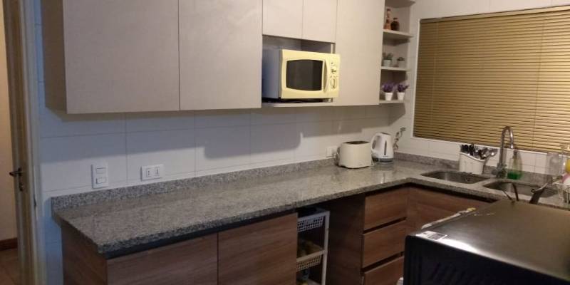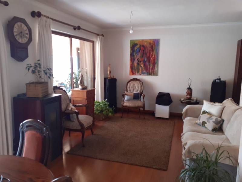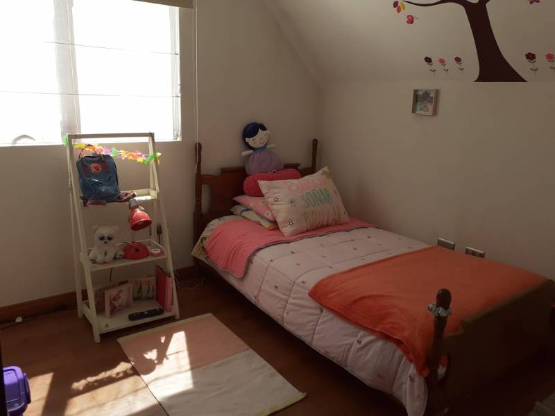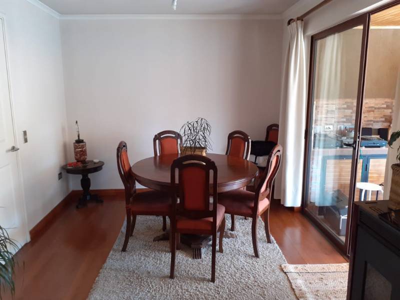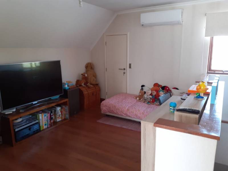 La propiedad cuenta en su primer piso con hall de entrada, baño de visita, dormitorio pequeño con clóset, dormitorio principal con baño en suite, walking closet y aire acondicionado, living - comedor con estufa a pellet, cocina amoblada y equipada con encimera, horno y campana empotrada, sector logia cerrada.