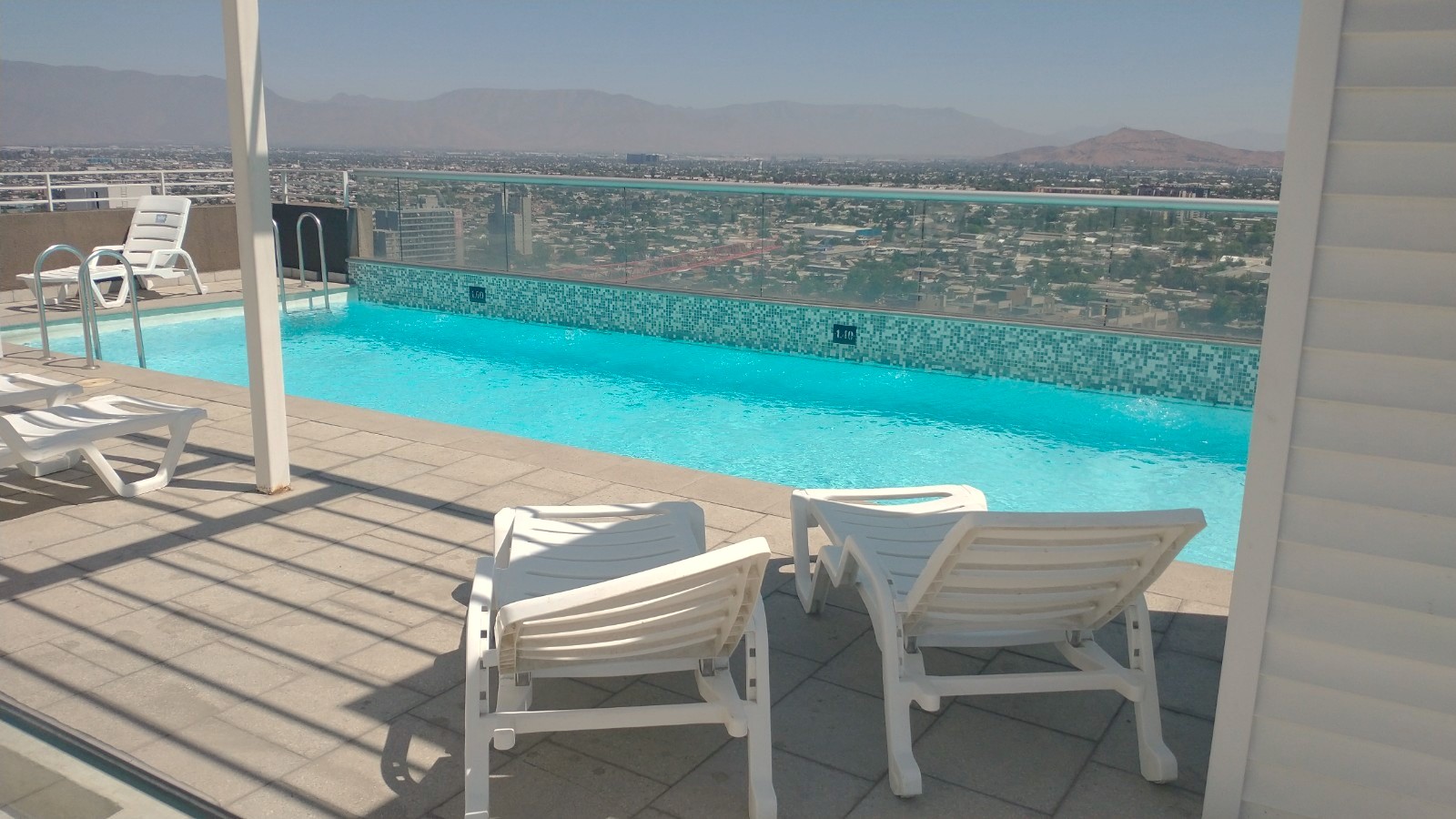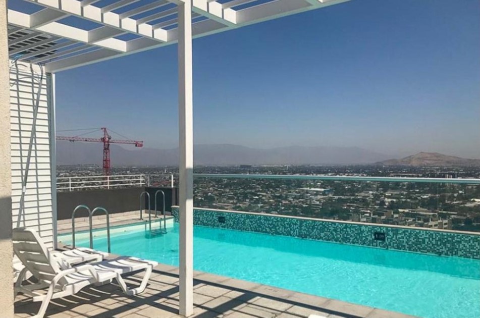 El edificio es bastante nuevo y cuenta con una piscina en la azotea del edificio, una lavandería y un gimnasio.