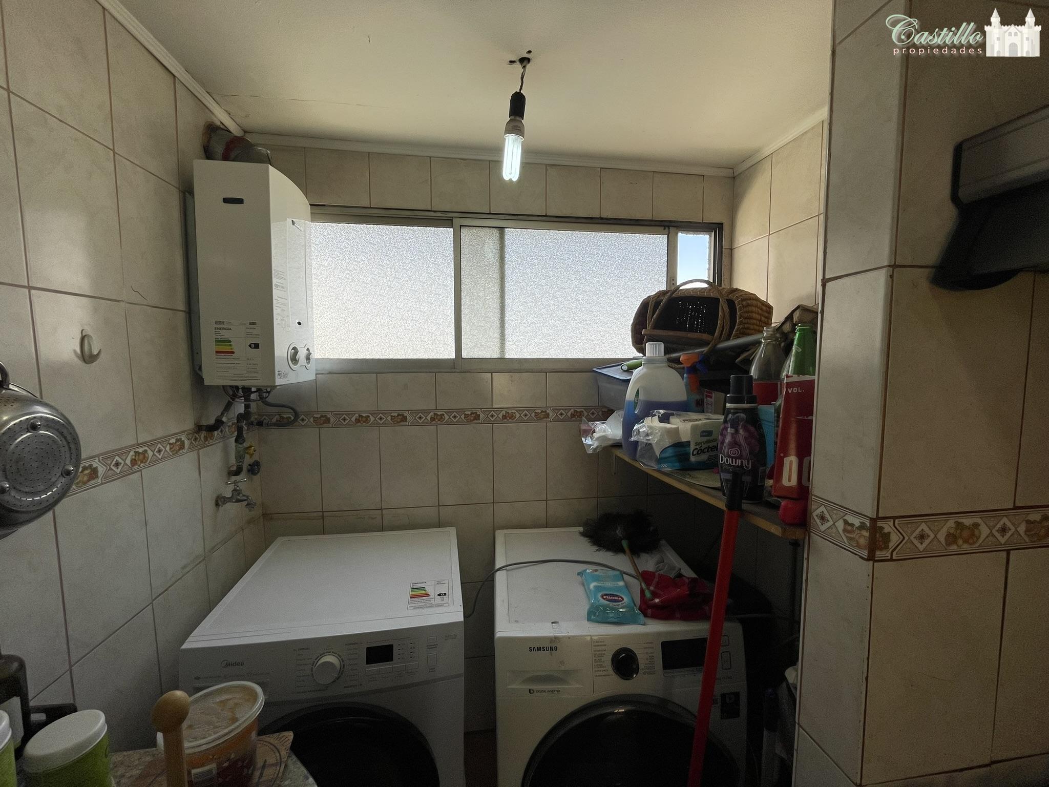 Propiedad cuenta con instalación para lavadora, secadora y calefón dentro de la cocina. Sistema de agua caliente y gas de cocina por gas natural.